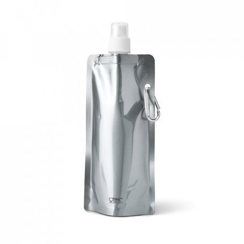 Squeeze dobrável em PE com bico de sistema "push-pull" e acabamento metalizado 460 mL Squeeze dobrável em PE com bico de sistema "push-pull" e acabamento metalizado. Contém uma tampa transparente e um mosquetão para fácil transporte. Capacidade até 460 mL. Certificação EU Food Grade. 110 x 218 x 64 mm