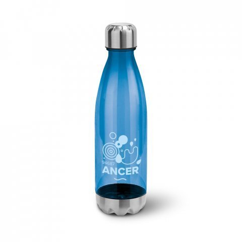 Squeeze em AS, com tampa e base em aço inox 700 mL Squeeze em AS, com tampa e base em aço inox. Capacidade até 700 mL. Caixa branca 94670 vendida opcionalmente. Certificação EU Food Grade. ø74 x 265 mm