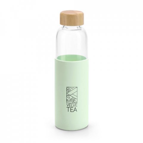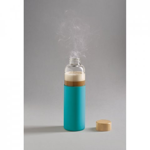 Squeeze em vidro borossilicato com tampa em bambu 600 mL Squeeze em vidro borossilicato com tampa em bambu. Revestido com luva em silicone que oferece uma proteção extra. Capacidade até 600 mL. Fornecido em caixa presente. Certificação EU Food Grade. A cor e o resultado da impressão nos materiais naturais pode variar entre produtos. ø68 x 231 mm