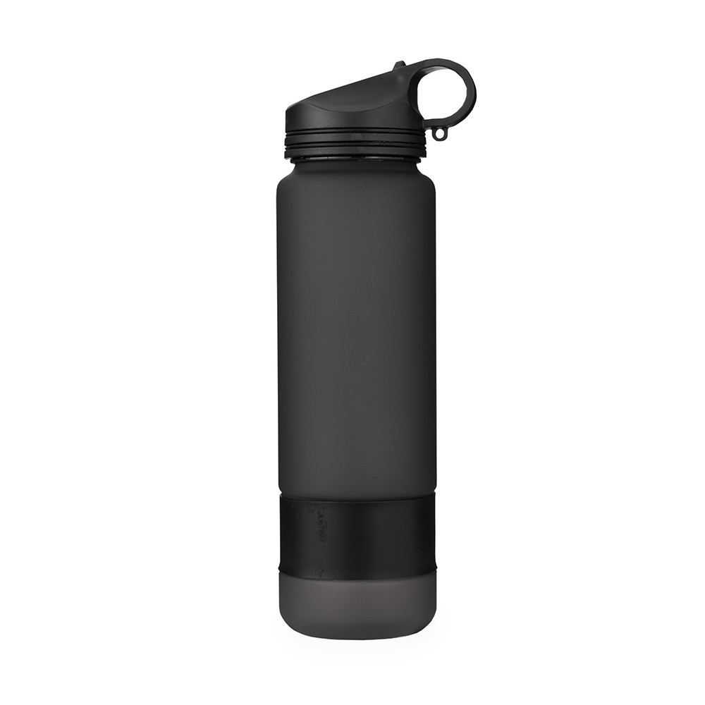 Squeeze plástico com acabamento fosco, marcação de volume e capacidade máxima de 900ml. Possui tampa rosqueável com alça fixa, bico flip e canudo interno removível. Acompanha tira emborrachada removível. Especificações: - Altura  26,8 cm - Largura  9,3 cm - Circunferência  23,9 cm - Medidas aproximadas para gravação(CxL)  13 cm x 6 cm (garrafa) - 3 cm x 9 cm (tira emborrachada) - Peso aproximado(g)  142