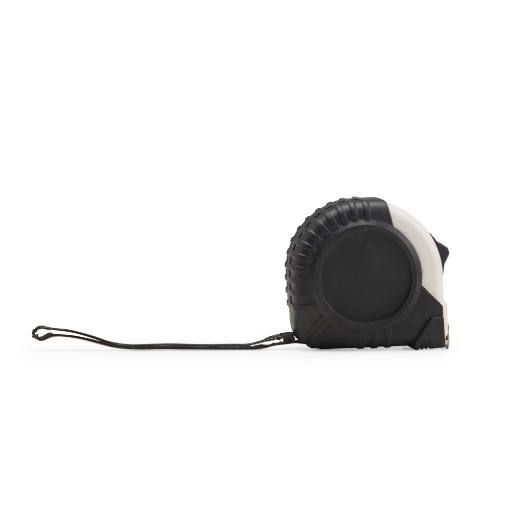Trena emborrachada com presilha metálica e detalhes em plástico, incluindo alça para transporte. Conta com fita de medição com alcance máximo de 5 metros, exibindo também medidas em pés e polegadas. Possui ainda uma trava de segurança de fácil acionamento: basta deslizar que a fita é contida totalmente no ponto desejado.