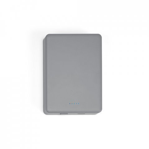 Bateria portátil com carregador por indução em ABS 100% reciclado, acabamento em mate e capacidade de 10.000 mAh Bateria portátil com carregador por indução (wireless) em ABS 100% reciclado e acabamento em mate. A bateria leve em lítio e com design slim, tem uma capacidade de 10.000 mAh e tempo de vida ≥ 300 ciclos. Esta bateria portátil torna-se muito prática para o dia a dia uma vez que permite, através do seu magnetismo, prender atrás dos smartphones ou capas com este sistema. Possui entrada/saída USB-C e potência máxima de 15W para carregamento rápido sem fios. Compatível com smartphones com tecnologia de carregamento sem fios. Incluso cabo USB-C para carregamento rápido. Fornecido em caixa presente de papel kraft reciclado. 90 x 65 x 19 mm | Caixa: 91 x 76 x 23 mm