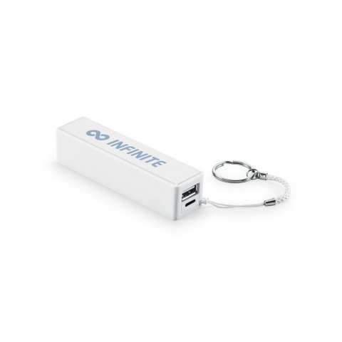 Bateria portátil em ABS com capacidade de 1 200 mAh Bateria portátil em ABS. Bateria de lítio com capacidade de 1.200 mAh, tempo de vida ≥ 500 ciclos e com uma porta de saída USB-A. Incluso cabo USB para carregar a bateria. Fornecido em caixa presente. 96 x 22 x 24 mm