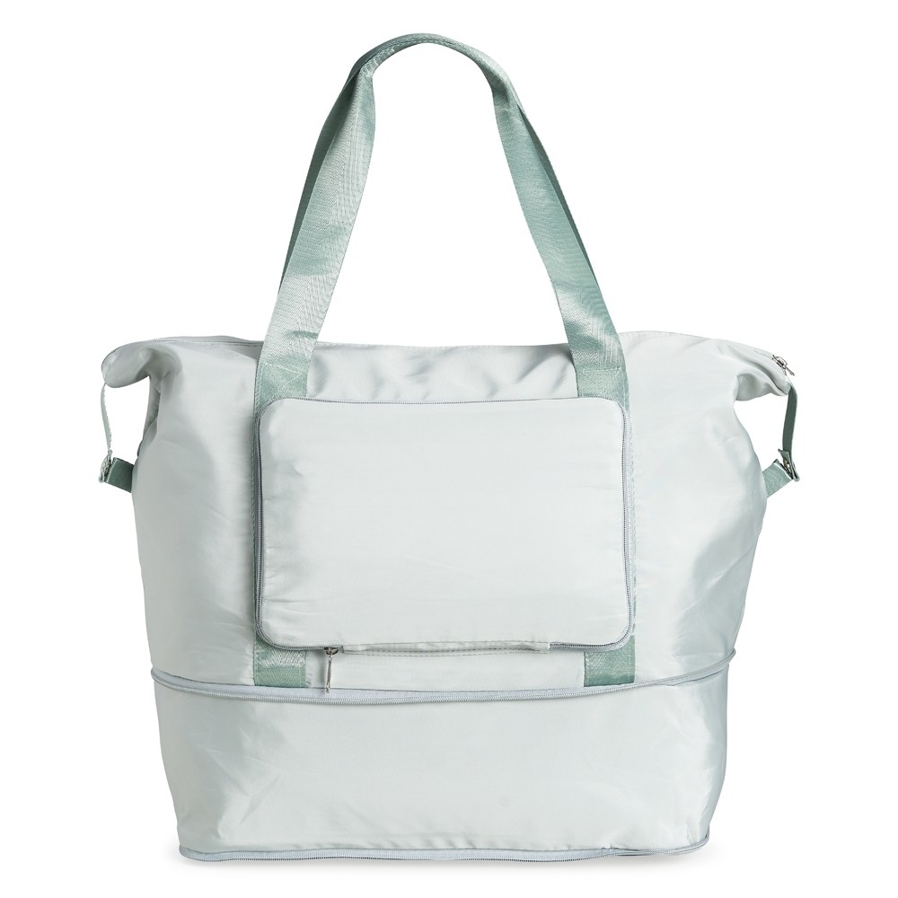Bolsa dobrável e expansível de 40 litros em poliéster à prova dágua com dois compartimentos e bolsos internos. Sendo dois deles exclusivos para tênis e itens molhados. Contém bolso para encaixe em malas de viagem. Especificações: - Altura  30 cm - Largura  58 cm - Profundidade  22 cm - Medidas aproximadas para gravação(CxL)  16 cm x 26 cm - Tamanho total aproximado(CxL)  Altura expandida 42cm - Peso aproximado(g)  422