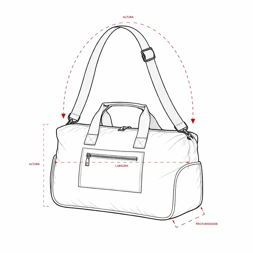 Bolsa esportiva de 29 litros em poliéster à prova dágua com quatro compartimentos, sendo dois deles exclusivos para tênis e itens molhados. Contém bolso para encaixe em malas de viagem, bolso interno e acompanha alça transversal.