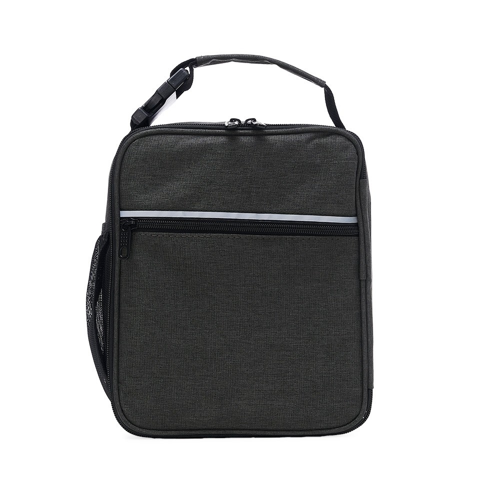 Bolsa térmica de nylon com dois compartimentos, capacidade de 8 litros. Com bolso telado e tela média de proteção interna, a bolsa possui uma faixa frontal refletiva, bolso lateral telado e alça de mão com fivela de encaixe. Especificações: - Altura  25 cm - Largura  20,5cm - Profundidade  10,5 cm - Medidas aproximadas para gravação(CxL)  15 cm x 19 cm - Peso aproximado(g)  319