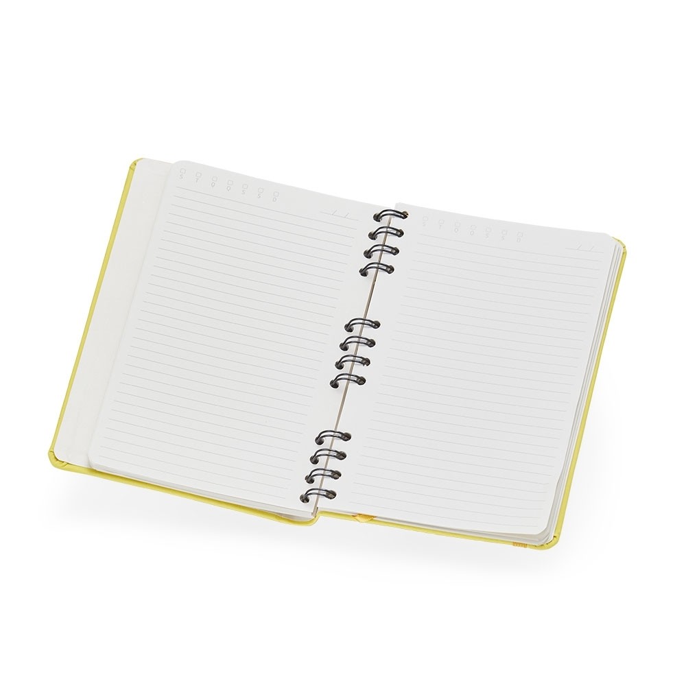 Caderneta emborrachada com wire-o, elástico para lacre e marcador de página em cetim. Possui páginas para dados pessoais, calendário de 2024 à 2026, página de contatos e aproximadamente 100 páginas em marfim com pauta. Especificações: - Altura  21,1 cm - Largura  14,4 cm - Espessura  1,9 cm - Medidas aproximadas para gravação(CxL)  19 cm x 12 cm - Peso aproximado(g)  321