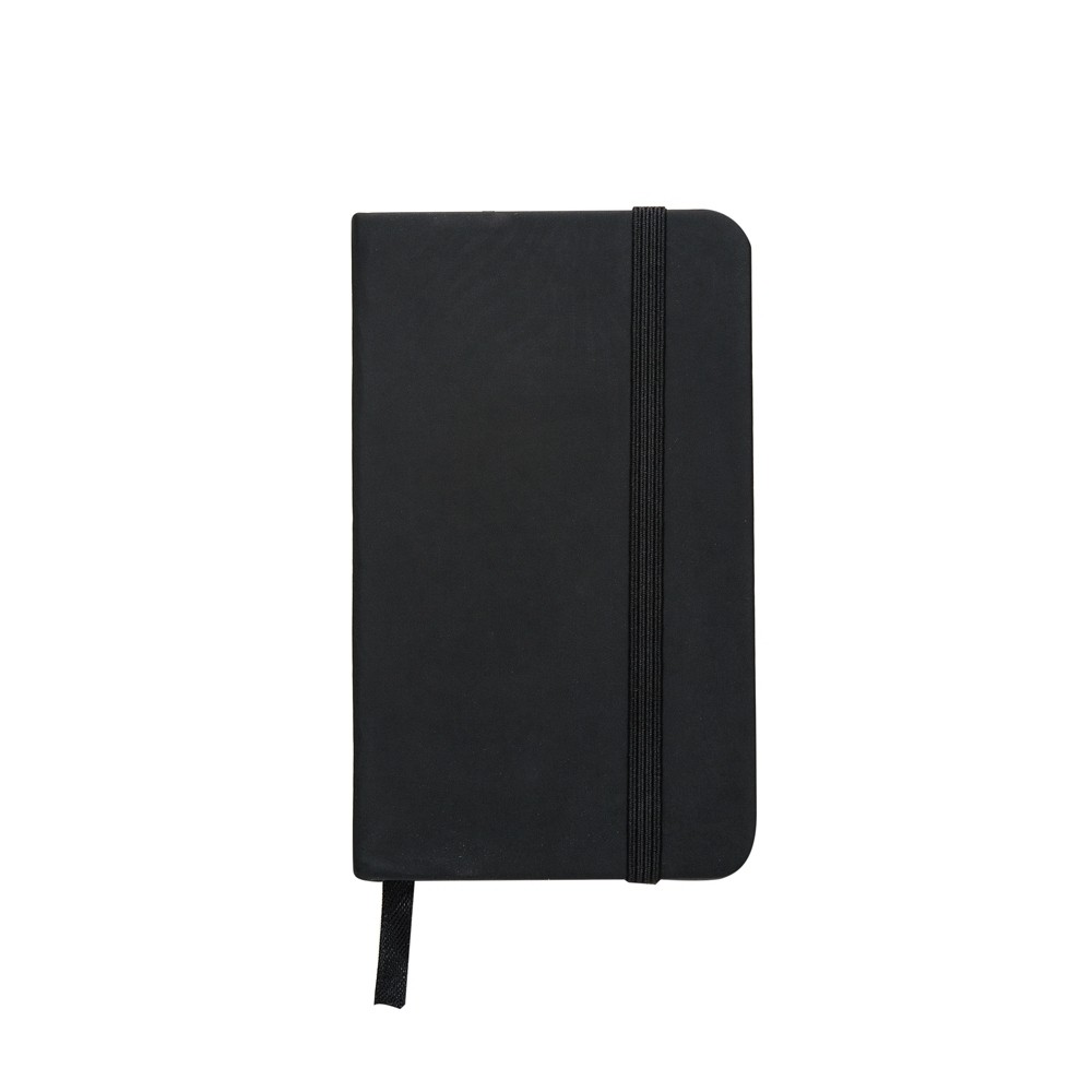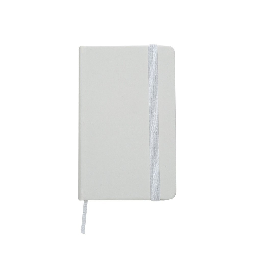 Caderneta emborrachada com elástico para lacre e marcador de página em cetim, contém aproximadamente 84 folhas sem pauta na cor marfim.