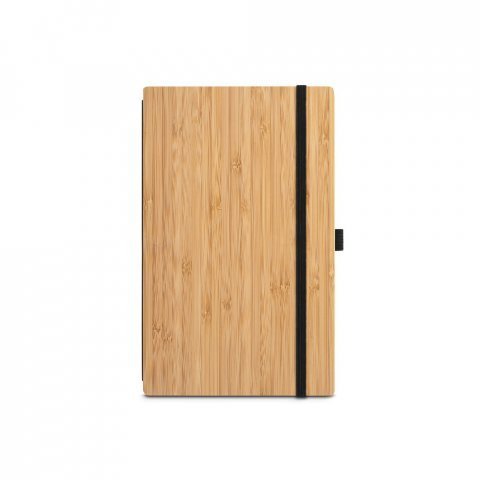 Caderno de bolso com capa e contracapa em placa de bambu e lombada em PET 100% reciclado, com 160 páginas lisas (S93583)