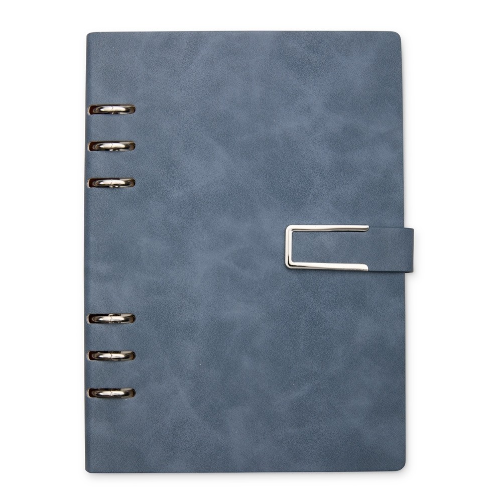 Organize todas as anotações de forma prática com o nosso caderno fichário em PU. Com um design super elegante, ele tem capa dura no formato A5 e um fechamento de fivela imantado que protege as 119 folhas em papel marfim. Os seis anéis permitem retirar e reorganizar as folhas sempre que precisarem, deixando tudo do seu jeito. E para completar, a primeira folha traz um espaço especial para dados pessoais. Esse caderno fichário é a escolha perfeita para manter tudo organizado e com muita sofisticação. Especificações: - Altura  22,9 cm - Largura  16,5 cm - Espessura  2,7 cm - Medidas aproximadas para gravação(CxL)  8 cm x 11 cm - Peso aproximado(g)  442