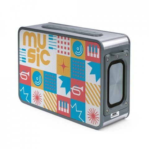 Caixa de som em ABS 100% reciclado com microfone incorporado 5.200 mAh Caixa de som em ABS 100% reciclado com 80W de potência. A capacidade da bateria é de 5.200 mAh, o que permite uma autonomia aproximada de 7h. Tem equalizador com 3 modos, transmissão BT 5.3, entrada e saída AUX e permite ligar microfone externo ou guitarra diretamente. Possibilidade de emparelhar duas caixas de som Jouncer para efeito stereo. Incluso carregador e uma alça para transporte da caixa de som ao ombro. Fornecido em caixa presente de papel kraft reciclado. A grelha é fornecida solta para pedidos não personalizados. 293 x 198 x 105 mm | Caixa: 330 x 309 x 147 mm