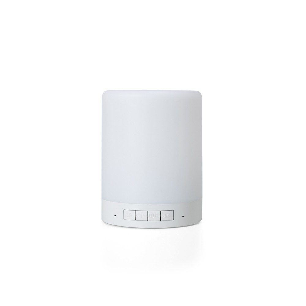 Caixa de som multimídia sem fio em plástico resistente com iluminação em LED acionadas por toque. Conta com painel de botões para troca de faixas e alternância de modos Bluetooth, Rádio FM e reprodução de MP3 via pen drive ou cartão MicroSD via entradas USB e cartão de memória. Possui ainda base com EVA antideslizante, alça de alumínio para transporte na parte inferior da caixa. Acompanha cabo Micro-USB e cabo Auxiliar P2.