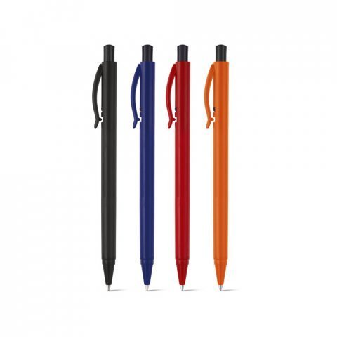 Caneta produzida com corpo de caixa de leite reciclada, detalhe em plástico PE.