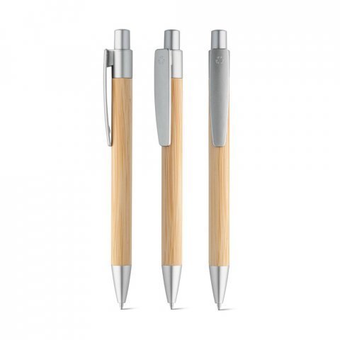 Caneta corpo em papel reciclado com detalhes em plástico PLA biodegradável.