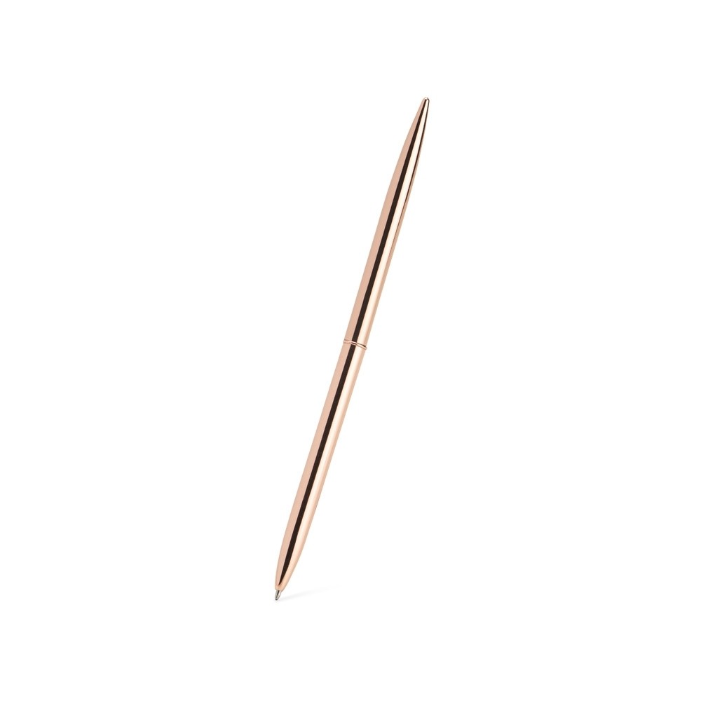 Caneta metálica com acionamento por rotação e carga esferográfica azul 1mm.