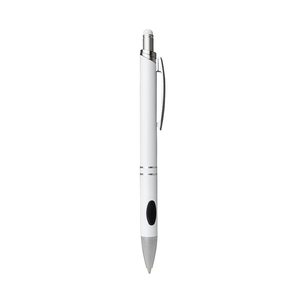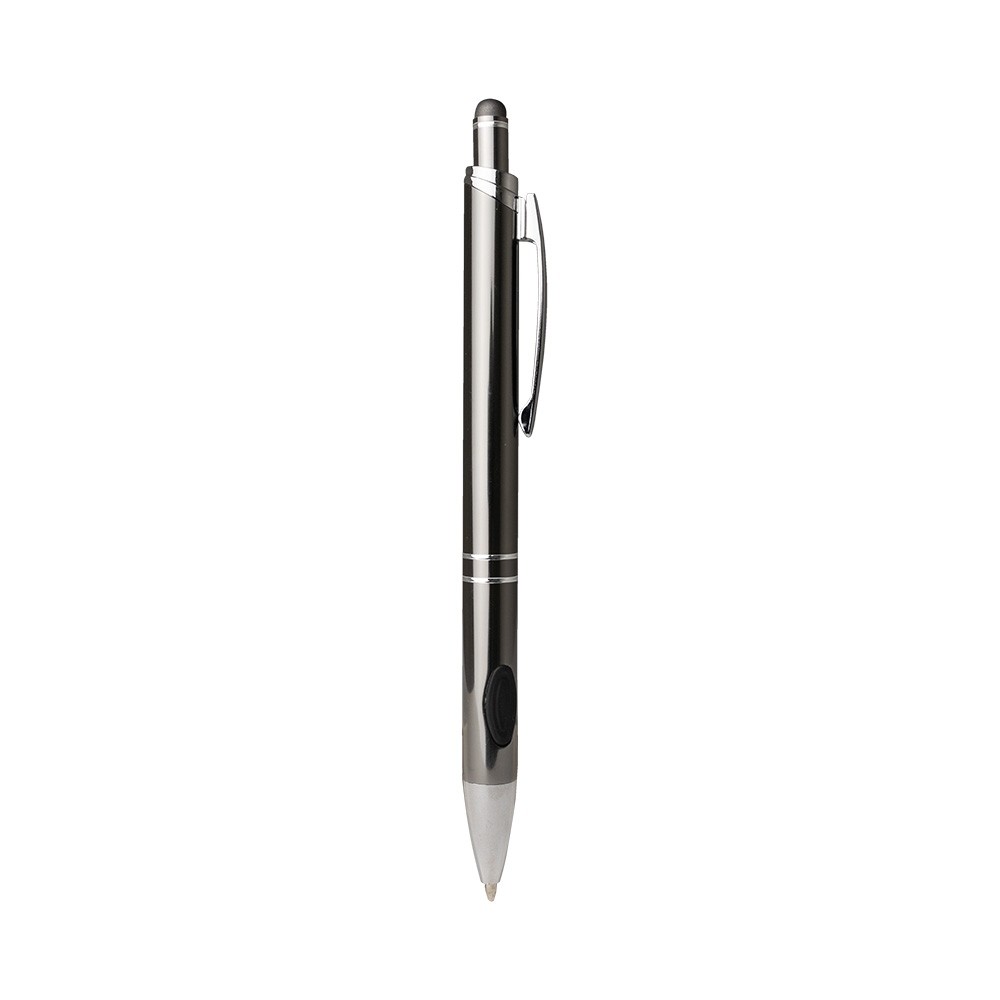 Caneta metálica com touchscreen, com detalhe emborrachado na parte inferior, carga esferográfica azul de 1.0 mm e acionamento por clique. Especificações: - Altura  14,4 cm - Largura  1,4 cm - Medidas aproximadas para gravação(CxL)  3 cm x 0,4 cm - Peso aproximado(g)  18