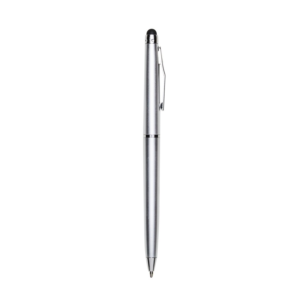 Caneta plástica touch screen com acionamento por rotação e carga esferográfica azul 1mm. Especificações: - Largura  1,3 cm - Comprimento  13,6 cm - Medidas aproximadas para gravação(CxL)  4,9 cm x 0,7 cm - Peso aproximado(g)  6