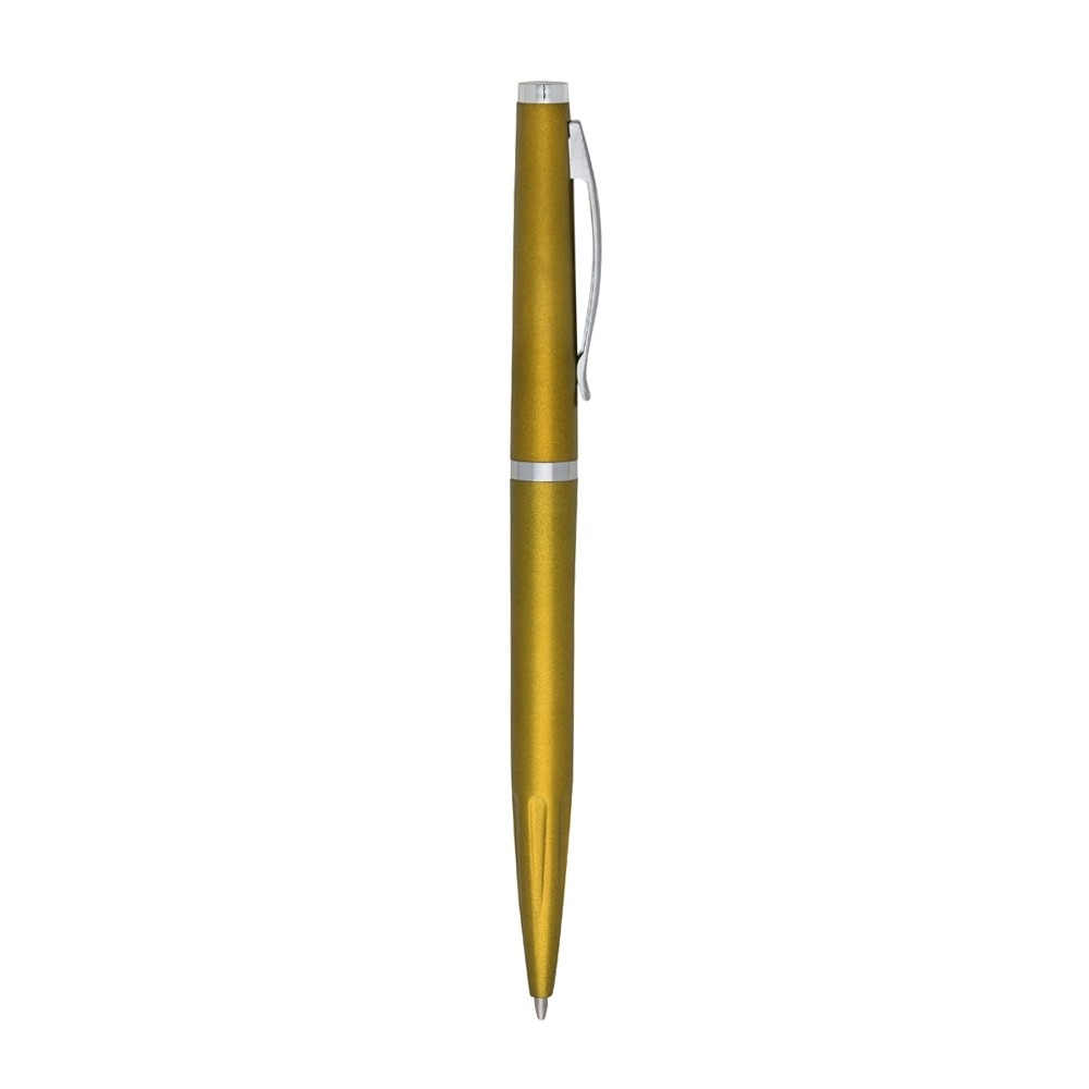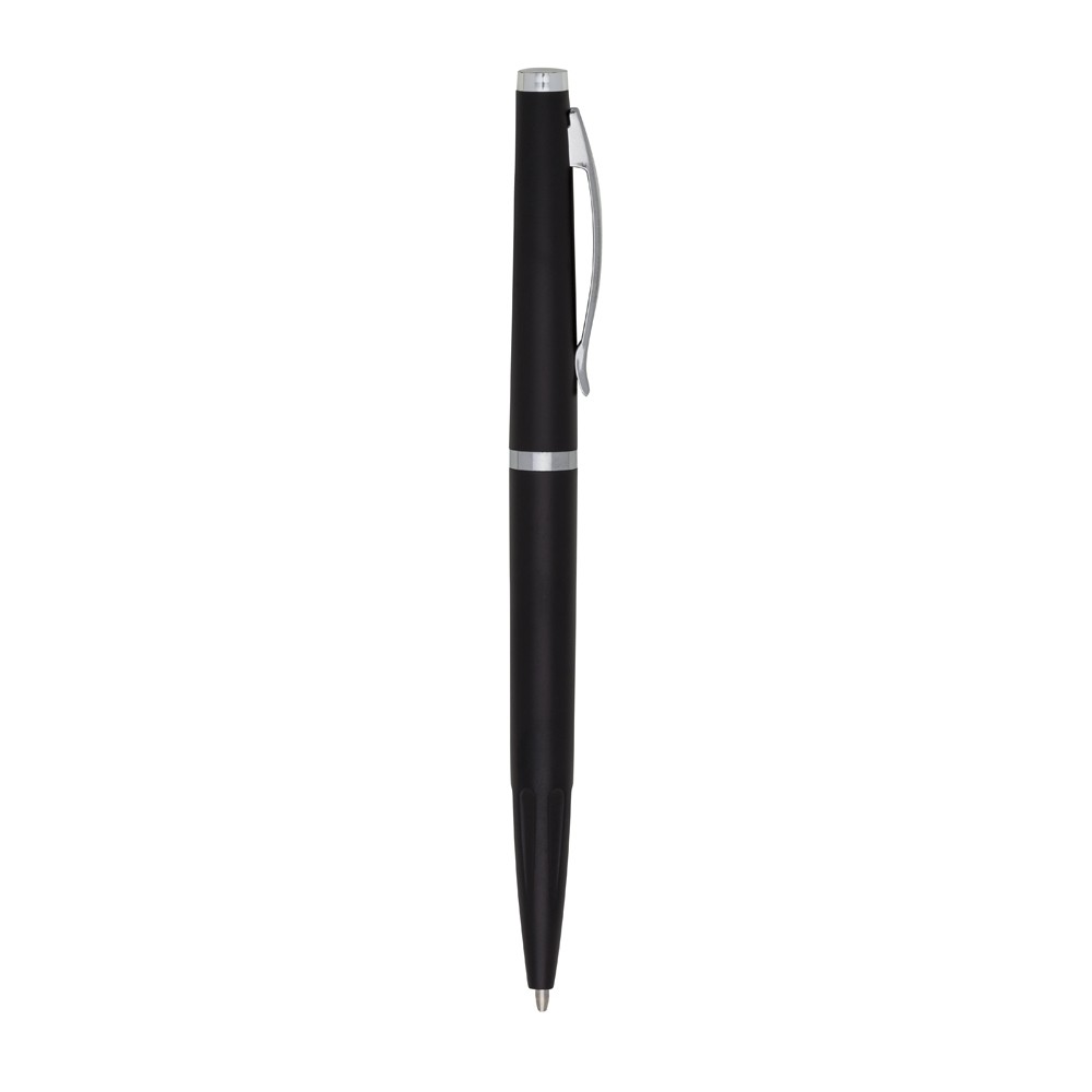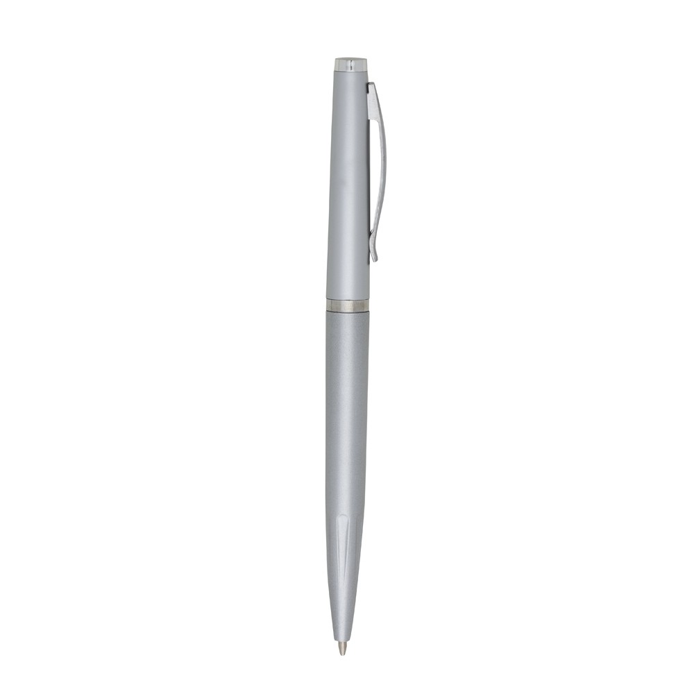 Caneta plástica com carga esferográfica azul 1.0mm e acionamento por rotação.