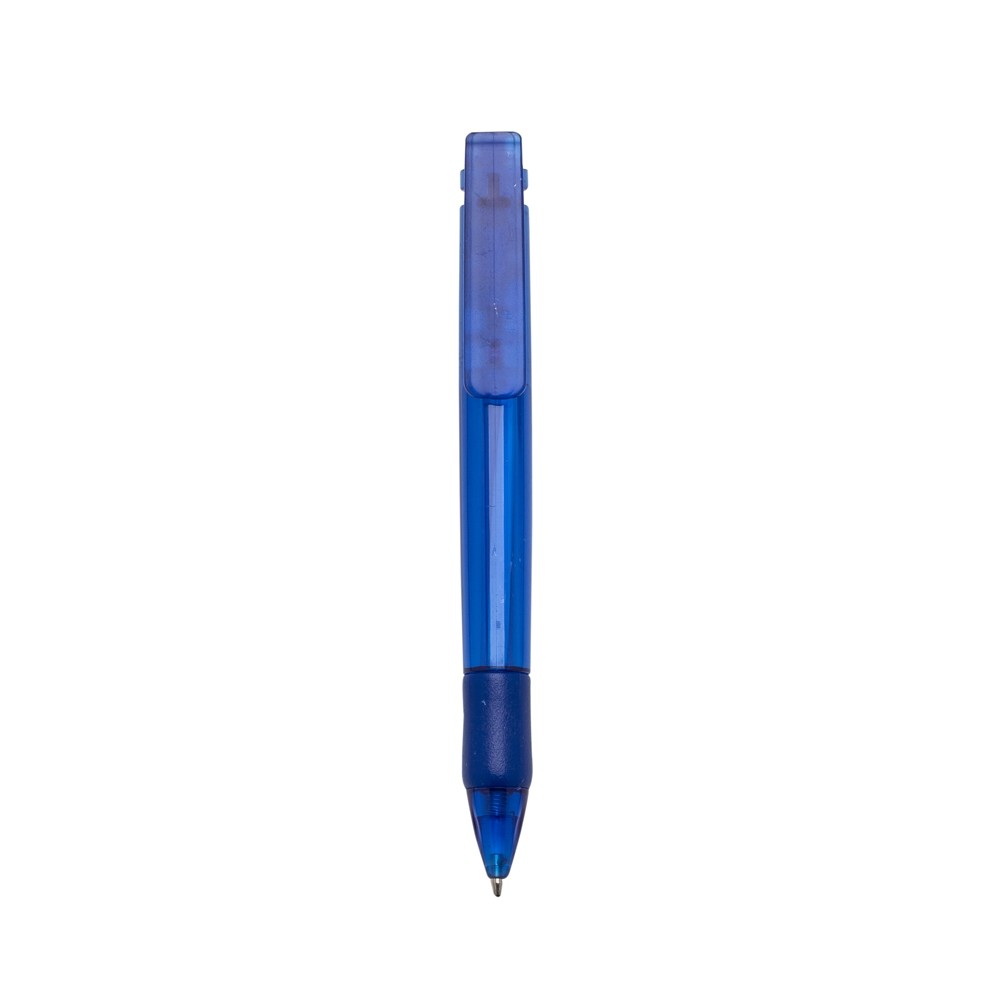 Caneta plástica com carga esferográfica azul 1.0 mm e acionamento por clique.