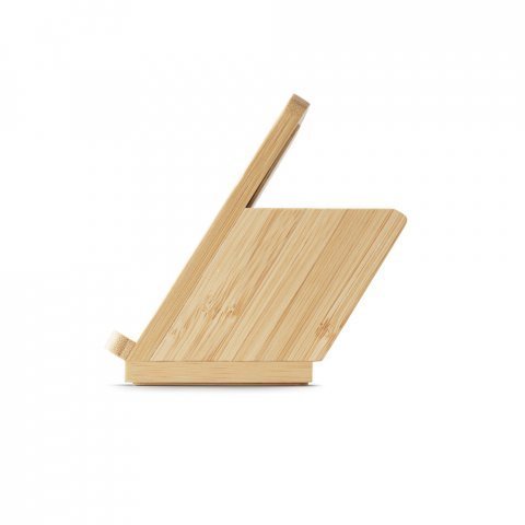 Carregador por indução (wireless) super-rápido em bambu com suporte para esferográficas. Possui uma potência de carregamento sem fios máxima de 15W. Incluso cabo de carregamento USB-C de 1m. Compatível com dispositivos móveis com tecnologia de carregamento sem fios. Fornecido em caixa presente de papel kraft reciclado. A cor e o resultado da impressão nos materiais naturais pode variar entre produtos. 77 x 71 x 118 mm