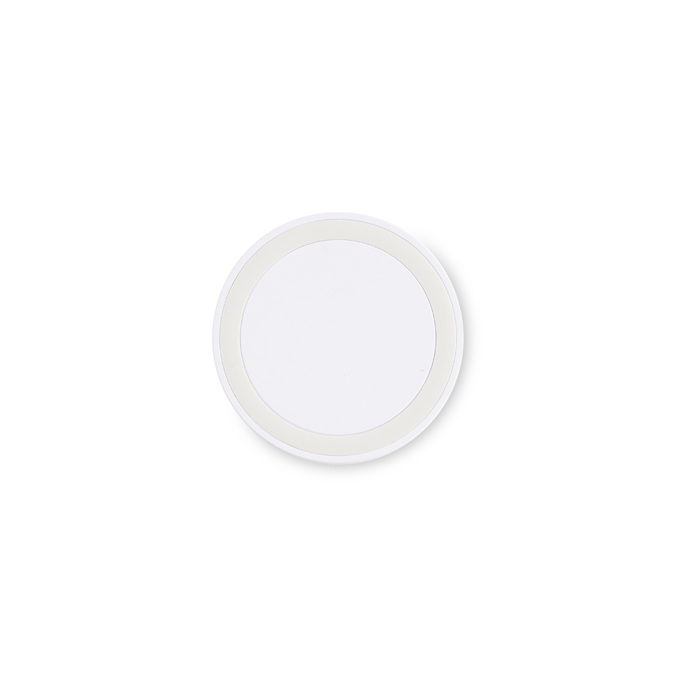Carregador via indução formato disco com indicador de funcionamento em led, feito em plástico ABS. Acompanha cabo USB. OBS.: O CARREGADOR APENAS TRANSFERE CARGA, ELE NÃO POSSUI BATERIA PARA ARMAZENAMENTO (NÃO É UM POWER BANK).