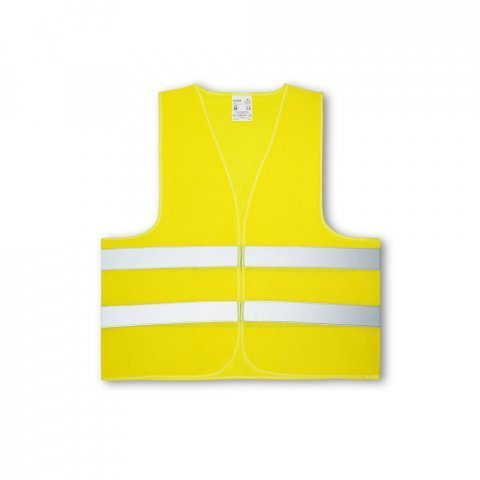 Colete de alta visibilidade em poliéster, com certificado pela norma EN ISO 20471 classe 2. Colete refletivo com 2 bandas refletoras horizontais e abertura frontal com fecho aderente. Tamanho único: 670 x 700 mm