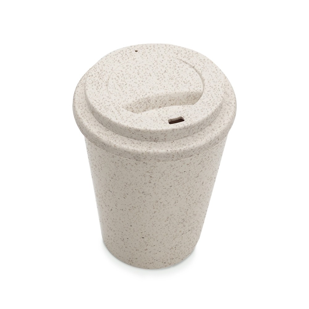 Copo fibra de arroz e polipropileno com capacidade de 450ml livre de BPA, possui tampa com bocal.