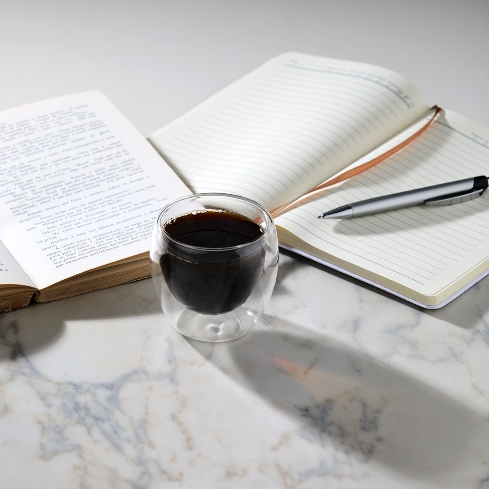 Copo de vidro borossilicato parede dupla com capacidade para 160ml.