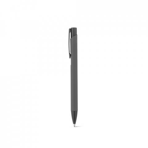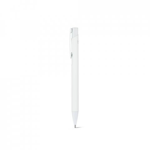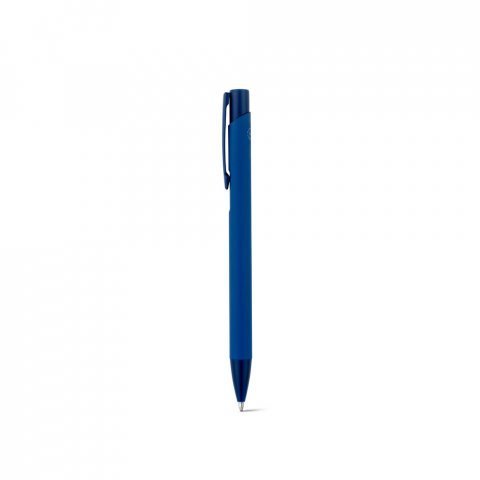 Esferográfica em alumínio 100% reciclado, com acabamento em borracha. Escrita em azul até 1,5 km. ø10 x 136 mm