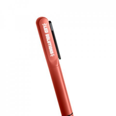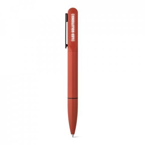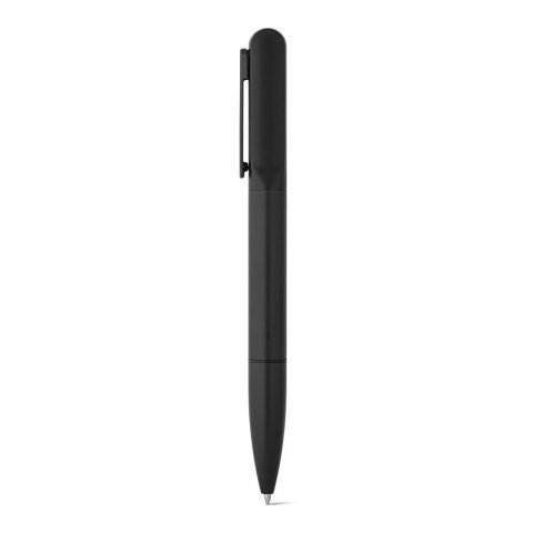 Esferográfica em alumínio 94% reciclado, com escrita em azul até 1,5 km. Quando personalizado no clipe permite que, ao ser rodado, ilumine o seu logotipo ou personalização. Fornecida em bolsa de oferta. ø12 x 140 mm