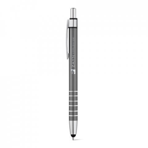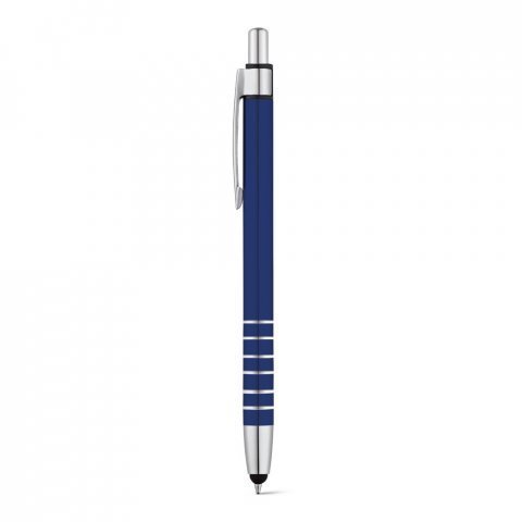 Esferográfica em alumínio com ponteira touch e clipe de metal. Escrita em azul até 1,5 km. ø9 x 138 mm