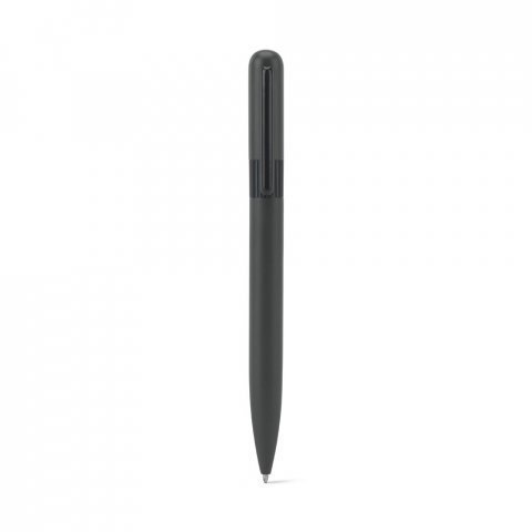 Esferográfica em metal 60% reciclado com design arredondado e escrita em preto (S51974)