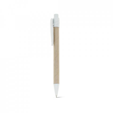 Esferográfica em papel kraft reciclado, com clipe de plástico. Escrita em azul até 1,5 km. A cor e o resultado da impressão nos materiais naturais pode variar entre produtos. ø10 x 140 mm