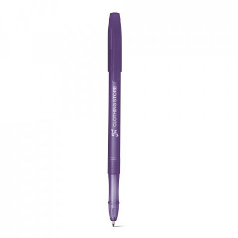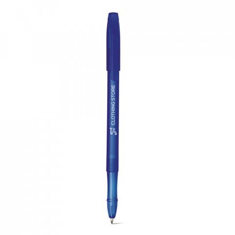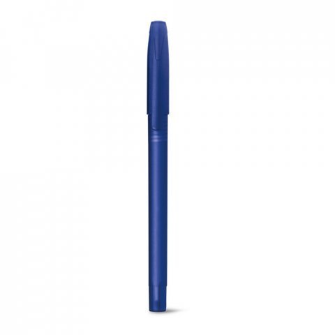 Esferográfica em PP e acabamento frost. Escrita em azul até 1,5 km. Produto certificado de acordo com a portaria Inmetro nº423 de 8/out/2021. ø10 x 142 mm