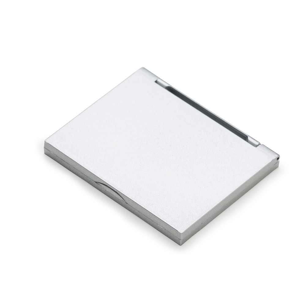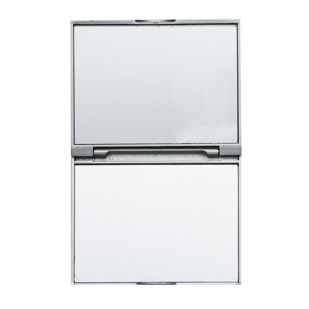 Espelho retangular duplo sem aumento, material em plástico resistente com uma faixa na superfície e verso liso. Especificações: - Altura  6,7 cm - Largura  8,3 cm - Medidas aproximadas para gravação(CxL)  3,5 cm x 8,3 cm - Peso aproximado(g)  48