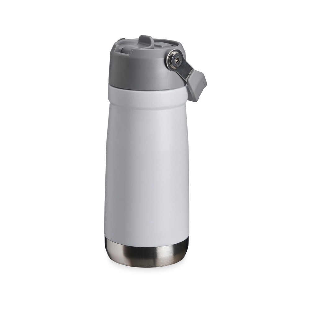 Garrafa térmica em inox de parede dupla, capacidade de 550ml. Tampa com alça de transporte, bico flip e canudo interno. Especificações: - Altura  21,5 cm - Largura  8 cm - Circunferência  25,4 cm - Medidas aproximadas para gravação(CxL)  12 cm x 5 cm - Peso aproximado(g)  402