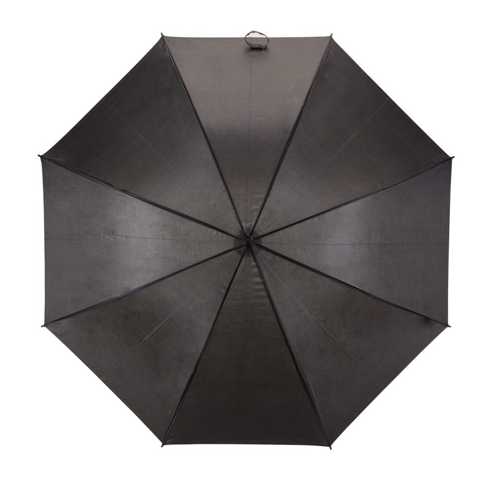 Guarda-chuva com tecido de nylon e abertura automática, basta acionar o botão inferior. Possui 8 varetas pretas de aço, pegador e bico superior de plástico.