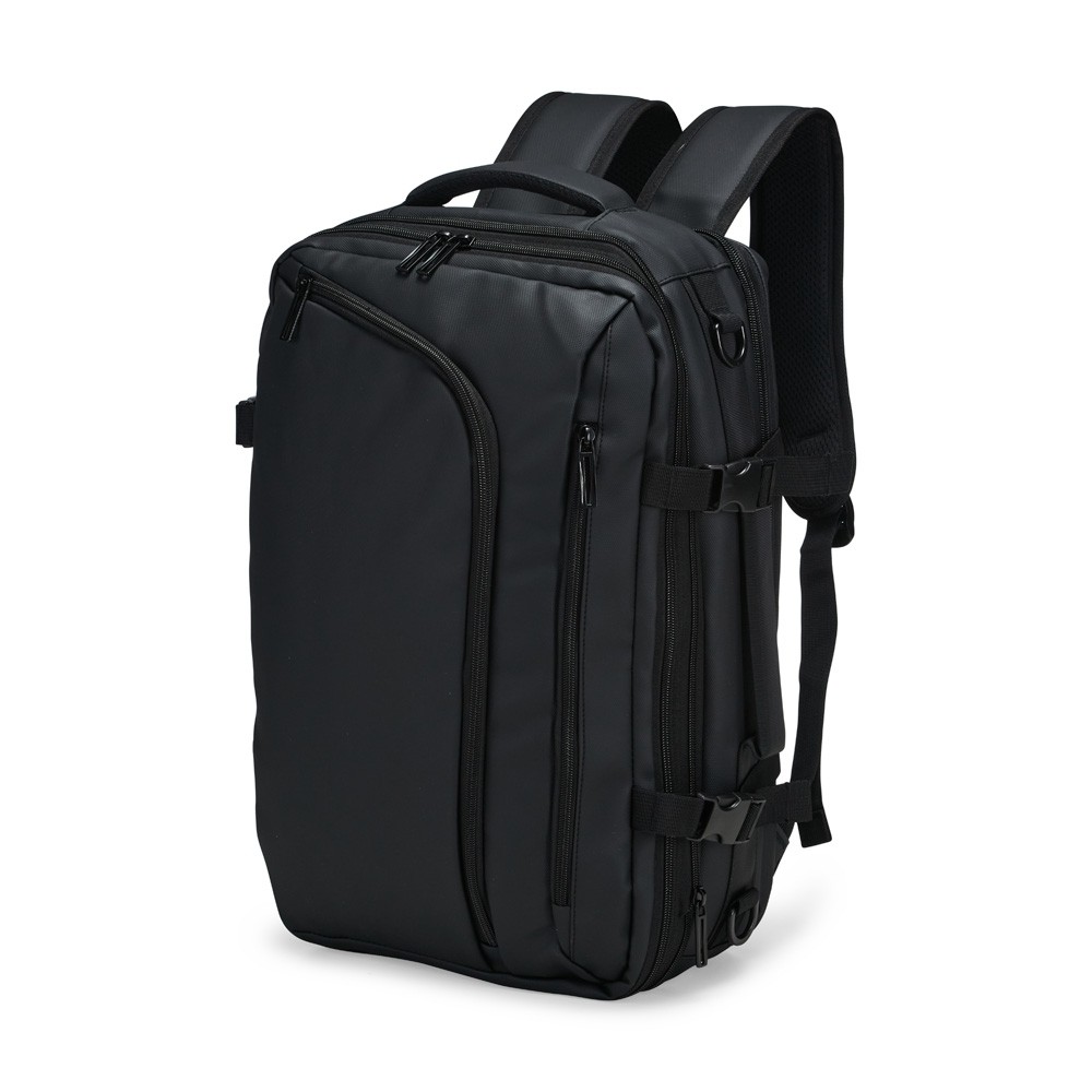 Mochila em nylon com uma camada de PU impermeável com capacidade máxima de 28 litros. Possui um compartimento interno a com sistema de vedação vácuo para guardar roupas e outros objetos (bomba compressora não incluído) e duas divisórias em poliuretano termoplástico de tamanhos diferentes, além de bolsos frontais, um lateral em tela e outro traseiro com divisória para notebook de até 15,6 polegadas. Dispõe ainda de alças acolchoadas em espuma respirável, uma alça lateral para transporte horizontal e outra para ombro ajustável em nylon.