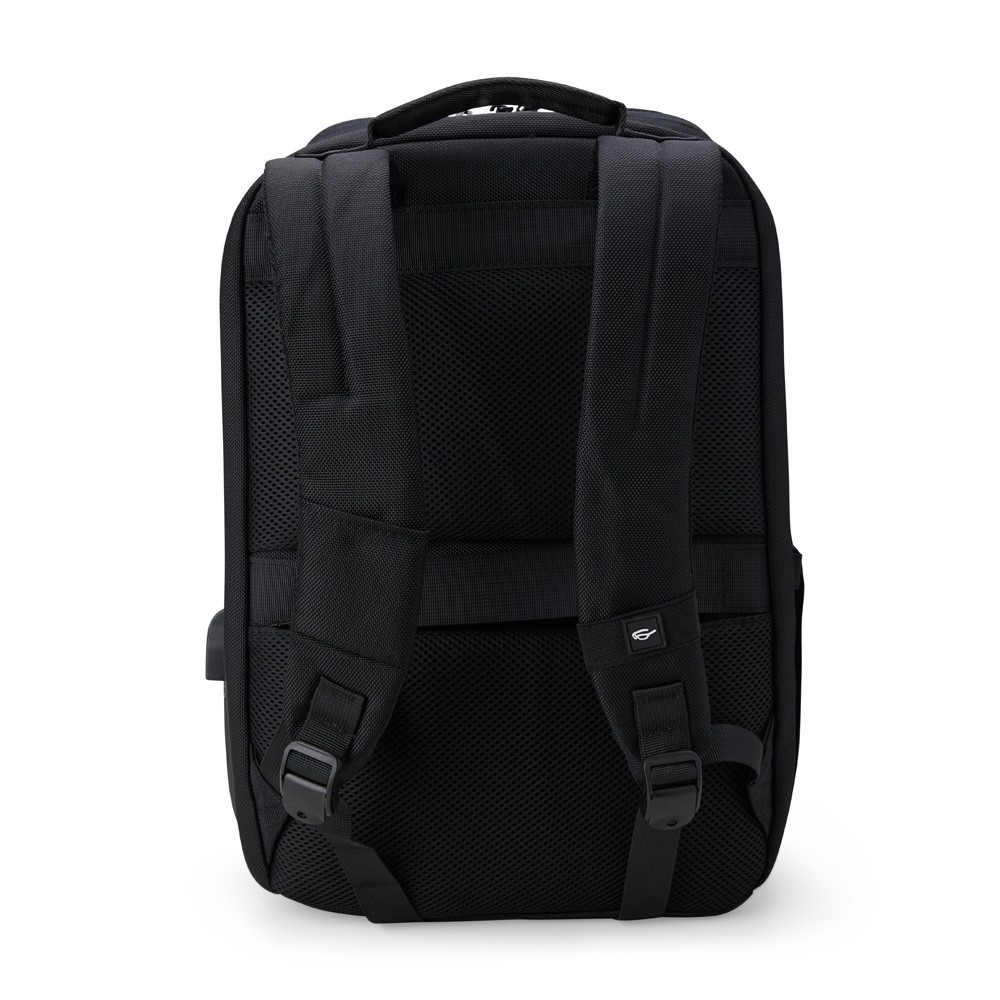 Mochila confeccionada em Nylon 22 litros com detalhes em couro sintético. Contém 5 compartimentos, sendo um bolso com faixa refletiva, divisórias internas para acessórios, bolso para tablet e notebook 15.6, bolso antifurto nas costas, bolso externo na lateral com elástico, suporte externo USB, alça para encaixe em malas de viagem, alças da mochila possuem bolsos integrados para suporte de óculos e cartões.