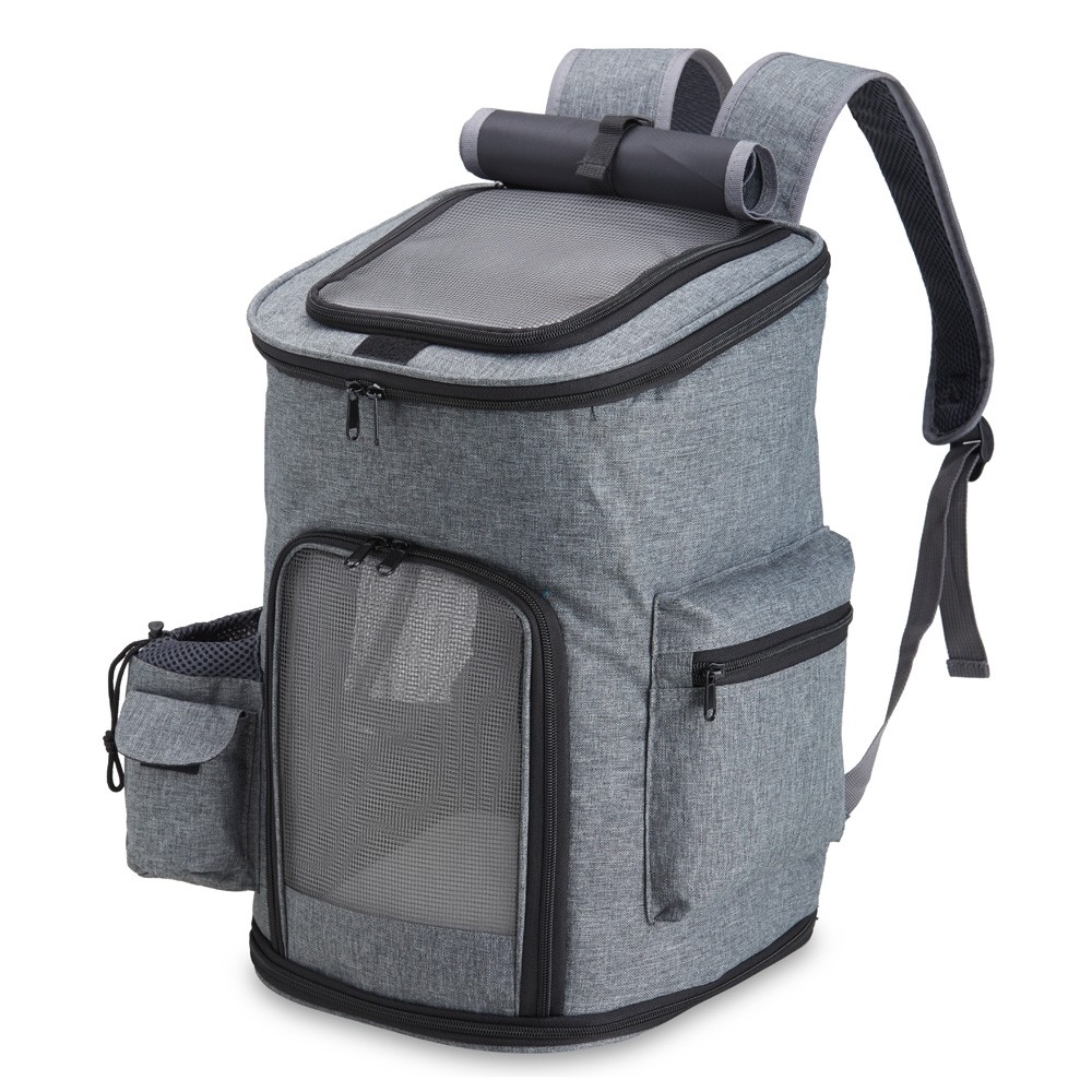 Mochila para transporte de pets, confeccionada em tecido Oxford, apresenta um compartimento lateral e bolsos adicionais. Seu tapete dupla face, com uma camada aveludada, foi projetada para garantir o máximo conforto ao pet. Equipada com telas respiráveis em nylon, esta mochila possui duas aberturas superiores: uma completa e outra parcial, com cobertura ajustável. Além disso, conta com uma abertura frontal parcial e um fundo com abertura completa, proporcionando uma experiência de transporte arejada e prática para entrada e saída do pet. A mochila dispõe de alça de mão e alças para as costas revestidas com material respirável.
