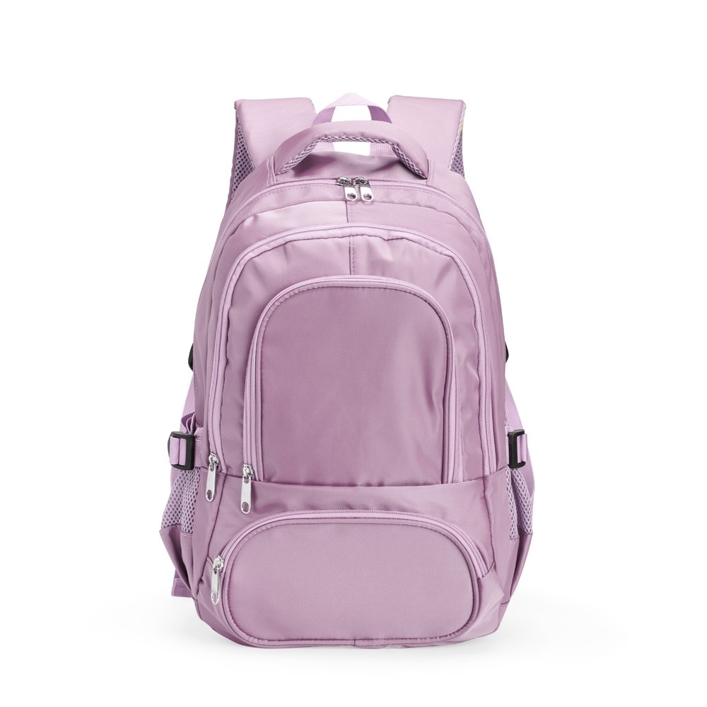 Mochila feita em poliéster impermeável com capacidade de até 17 litros. Possui compartimento interno que inclui um pequeno bolso com zíper e divisória acolchoada para notebooks de até 14 polegadas. Conta ainda com três bolsos externos em tamanhos diferentes e mais dois bolsos laterais em tela com regulagem. As alças de costas e de mão possuem revestimento espumado. Especificações: - Altura  37 cm - Largura  31 cm - Profundidade  15 cm - Medidas aproximadas para gravação(CxL)  15 cm x 15 cm - Peso aproximado(g)  463