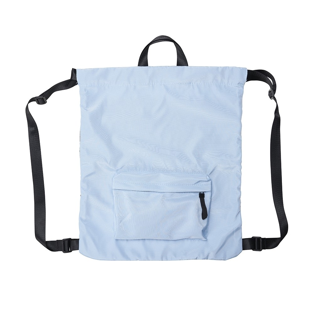 Mochila saco feita em poliéster resistente à água com alças reforçadas de nylon. Possui ainda um bolso frontal com fechamento em zíper.