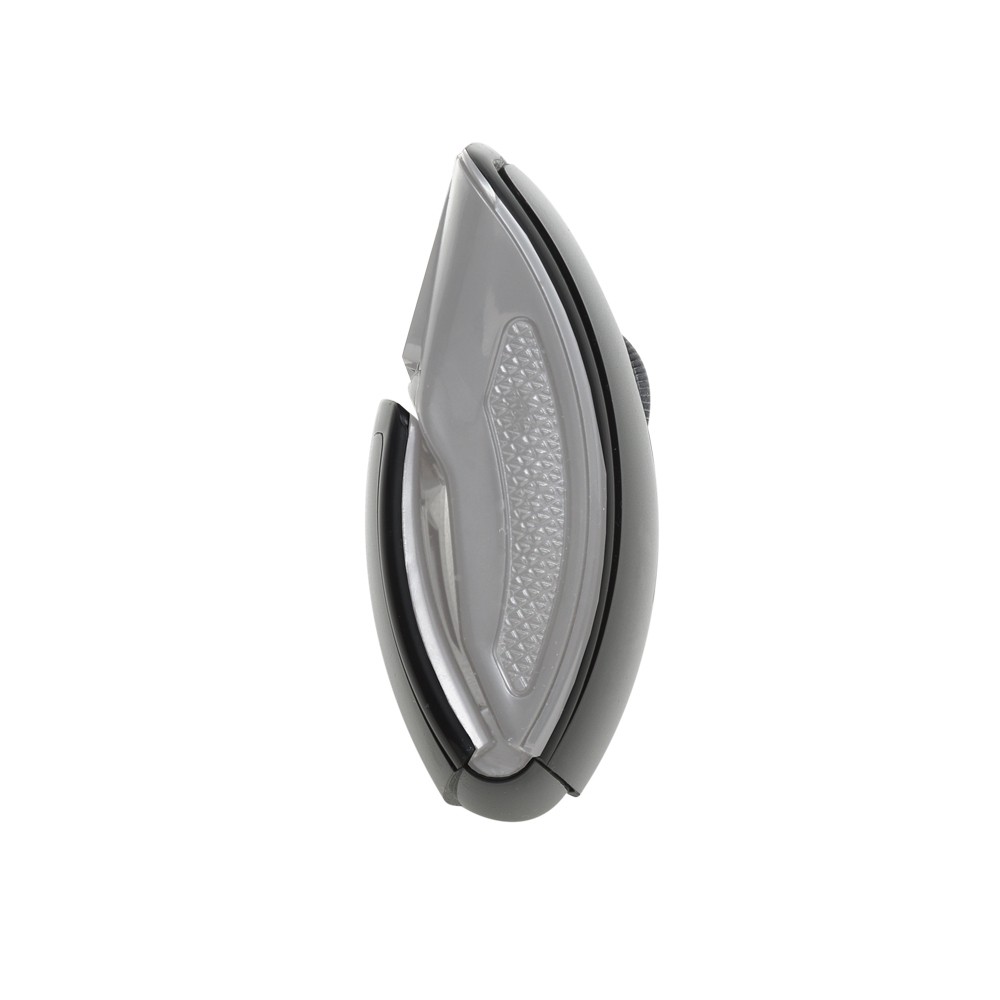 Mouse óptico de tecnologia wireless e retrátil. Mouse anatômico de material plástico resistente, possui rolamento plástico translúcido, laterais texturizadas, parte traseira dobrável, luz inferior óptica vermelha, receptor Nano USB 2.4 GHZ. Funcionamento através de 2 pilhas AAA(não acompanha).