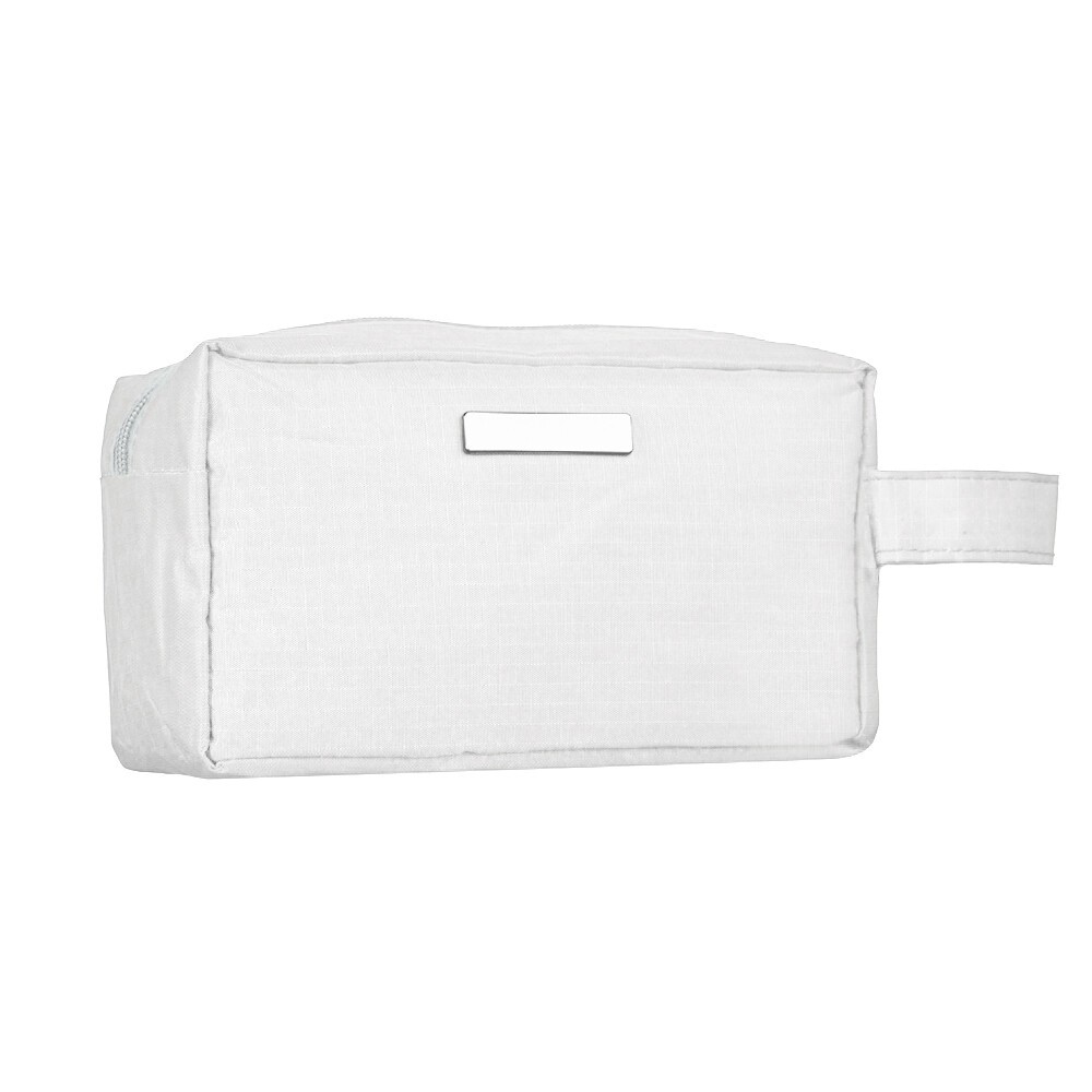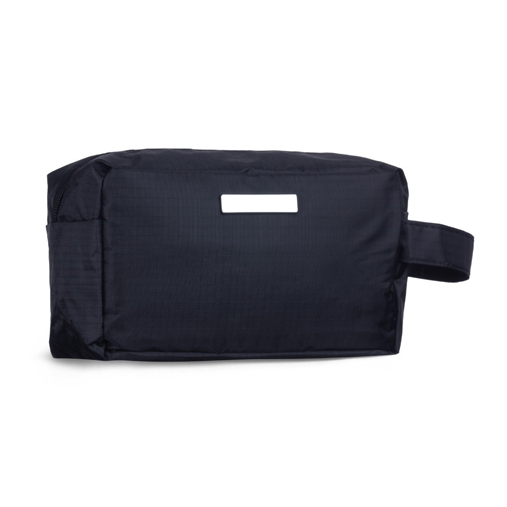 Nécessaire de pvc resistente à água com plaquinha metálica fixa. Especificações: - Altura  11,5 cm - Largura  20 cm - Profundidade  9 cm - Medidas aproximadas para gravação(CxL)  1 cm x 4,8 cm - Tamanho total aproximado(CxL)  Comprimento da alça 14 cm - Peso aproximado(g)  77