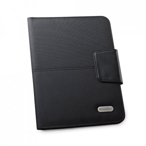 Pasta A4 em c. sintético e 1680D com fecho magnético. O interior contém um bloco de 40 páginas pautadas, suporte para esferográfica (não inclusa) e vários bolsos. Placa disponível para personalização. 245 x 325 x 15 mm | Chapa: 45 x 15 mm