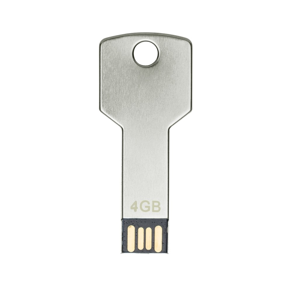 Pen drive alumínio formato chave 4GB/8GB. Especificações: - Medidas aproximadas para gravação(CxL)  2,5 cm x 1 cm - Tamanho total aproximado(CxL)  6,3 cm x 2,4 cm - Peso aproximado(g)  5