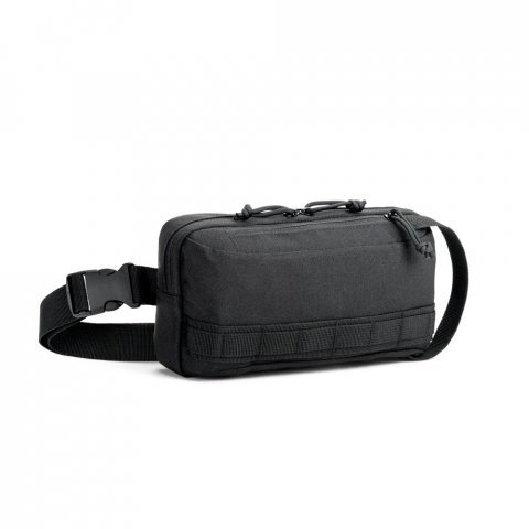 Pochete em poliéster reciclado 600D de alta densidade e forro em poliéster reciclado 210D. Possui um compartimento principal espaçoso, um bolso e tiras multifuncionais na parte frontal. A bolsa tem uma pega e alça ajustável que permite o uso à cintura ou a tiracolo. 240 x 130 x 80 mm