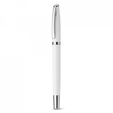 Roller em alumínio com clipe de metal. Escrita em azul. ø11 x 140 mm