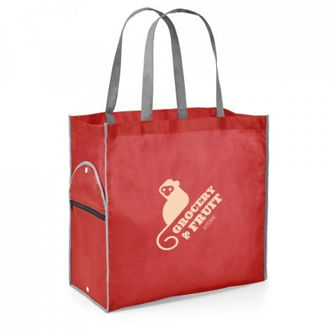 Sacola dobrável em non-woven (80 g/m²) com alças Sacola dobrável em non-woven (80 g/m²) com alças de 65 cm. Fornecida desdobrada. Dobrado: 200 x 120 mm | Aberto: 450 x 400 x 200 mm