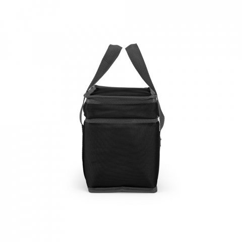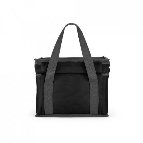 Sacola térmica em poliéster reciclado 600D com isolamento em PEVA 9.5 L Sacola térmica em poliéster reciclado 600D. Contém 2 compartimentos principais com isolamento em PEVA para facilitar a higienização e um bolso frontal com zíper. Capacidade até 9.5 L. Certificação EU Food Grade. 280 x 230 x 160 mm